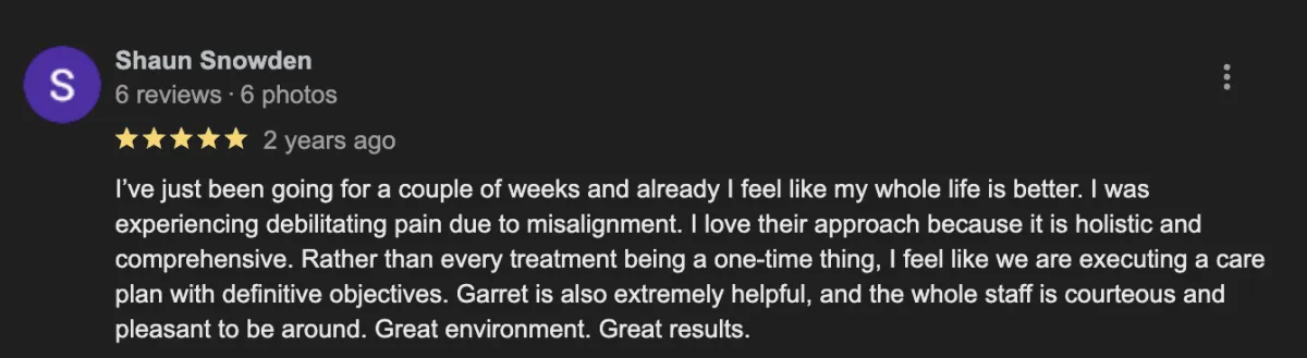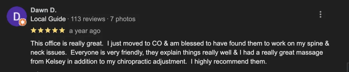 ✅ Spinal Examination: We will do a complete structural evaluation in order to identify any spinal misalignments or areas of concern that may be causing your condition or nerve impingement leading to your body’s inability to heal and function properly.